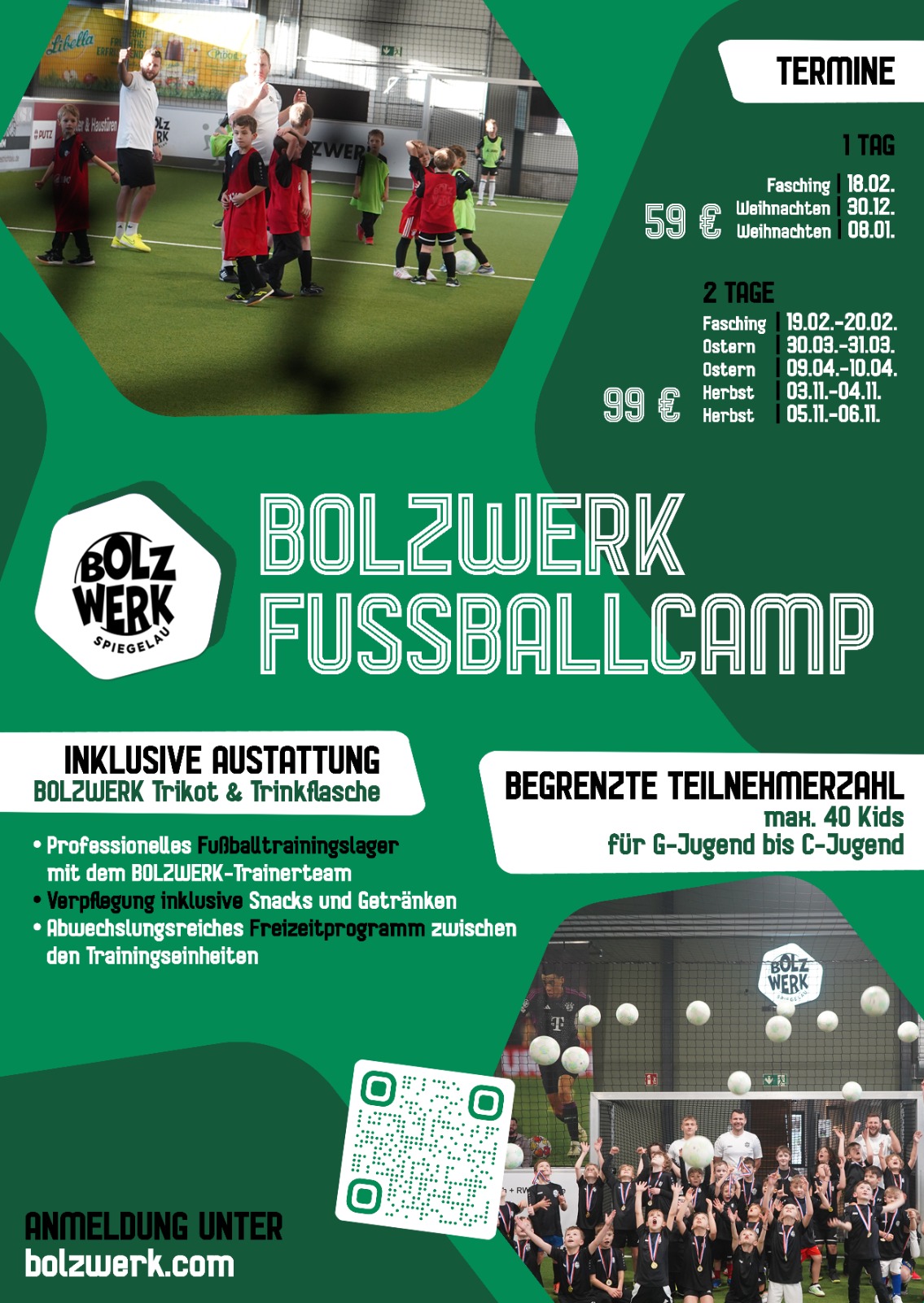 „Im BOLZWERK steht der Spaß am Fußball und Sport an erster Stelle – euch erwartet nicht nur eine moderne Fußball-Anlage, sondern auch eine top ausgestattete Sportsbar zum Entspannen nach dem Spiel – wir freuen uns auf euren Besuch!“